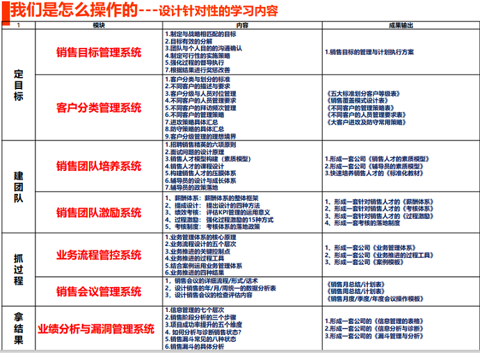 三、【培訓(xùn)+手冊(cè)+政策+輔導(dǎo)】營(yíng)銷管控訓(xùn)練大綱: