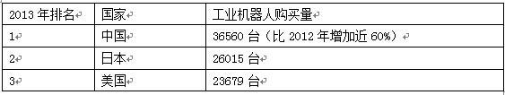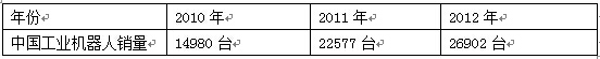 2013年工業(yè)機器人購買量前三名 (以下數(shù)據(jù)來源于德國世界機器人聯(lián)合會) 在2005年--2012年間,中國工業(yè)機器人的銷售量以年均25%左右的速度高速增長,即使在全球經(jīng)濟蕭條的2009年,銷量也在逆勢增長。