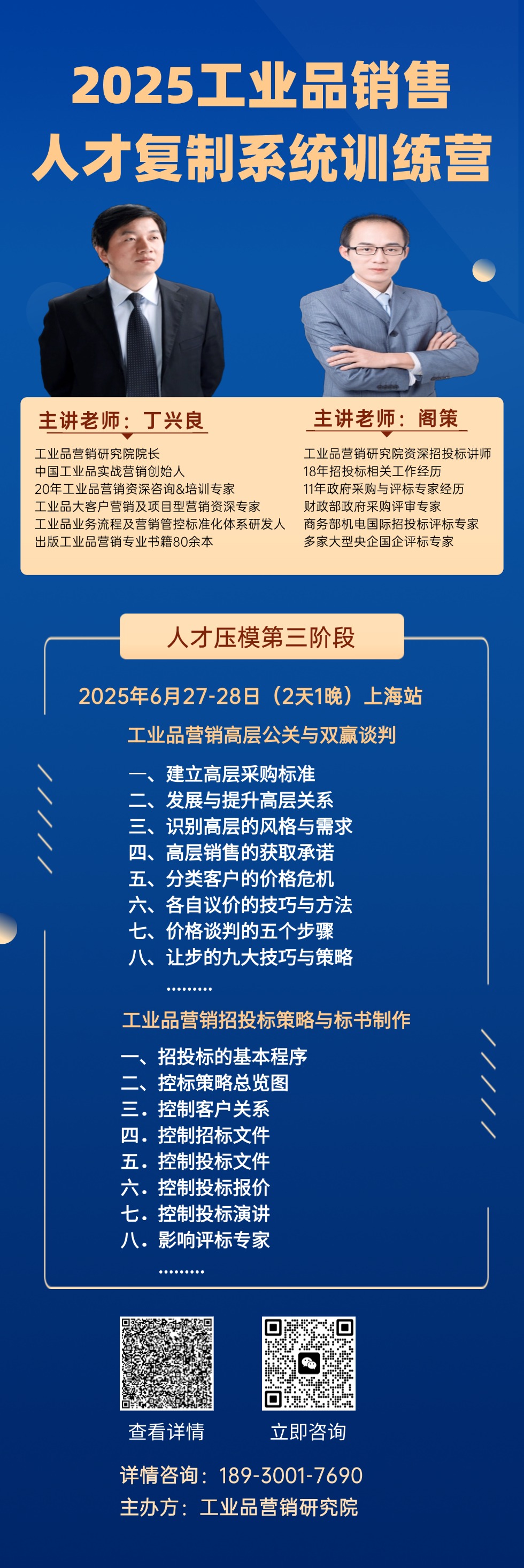 2025年6月27-28日工業(yè)品營銷高層公關(guān)與雙贏談判&招投標(biāo)策略與標(biāo)書制作-上海公開課