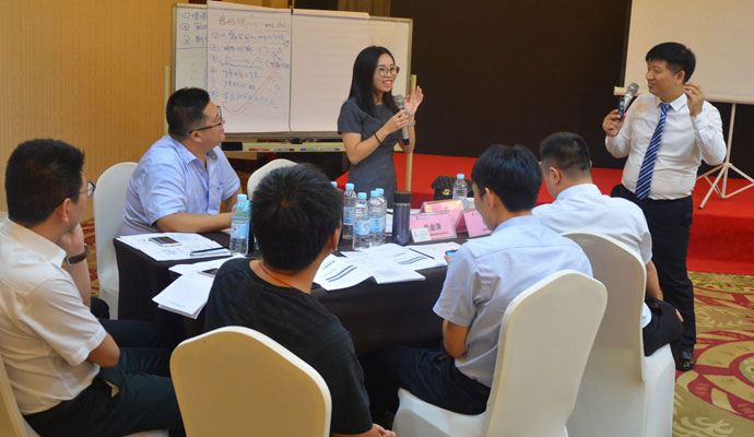 講師針對參加課程訓練企業(yè)的實際情況設計了銷售模擬場景,現(xiàn)場的學員實行分組制,分別扮演幾個銷售團隊,進行了模擬的實戰(zhàn)競爭,講師針對現(xiàn)場表現(xiàn)提出了改善意見,同時分享了自己的經(jīng)驗和建議。