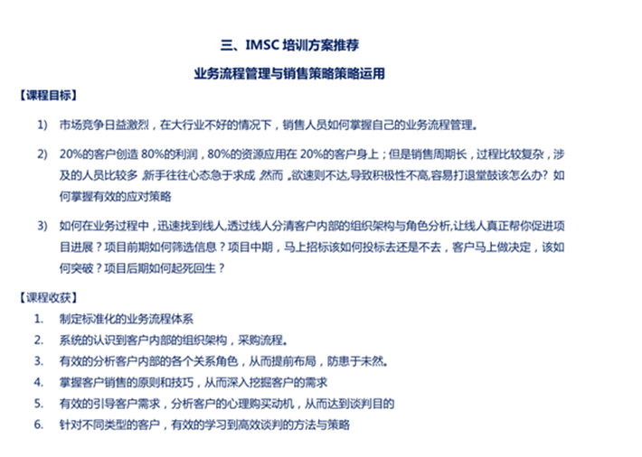 魯西化工集團此次培訓的項目背景如下:為了提升銷售人員的業(yè)務流程分析能力,掌握項目每一步應使用的銷售策略。希望培訓可以達到的要求是:提升銷售人員業(yè)務過程中的分析能力,掌握業(yè)務中每一步流程的策略及方法提高與客戶的談判以及回款能力。