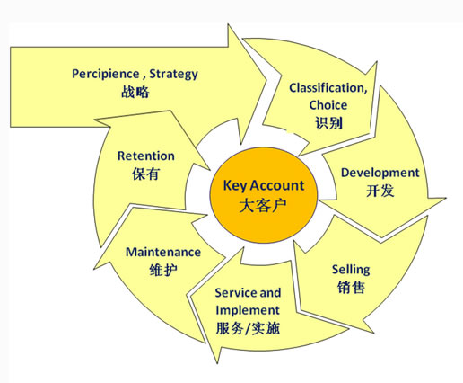 如上圖,是一般公司的大客戶營(yíng)銷管控系統(tǒng),而面對(duì)一對(duì)一的大客戶營(yíng)銷管控是在其基礎(chǔ)上的進(jìn)一步的發(fā)展。差異化是很難突破的點(diǎn),案例中王創(chuàng)也有曾經(jīng)陷入苦惱在時(shí)候,可是,他迅速做出了反應(yīng),他利用自身的優(yōu)勢(shì)和特點(diǎn),沿著差異化這條路來(lái)發(fā)展,終于走出了自己的特色“一對(duì)一的大客戶服務(wù)”。