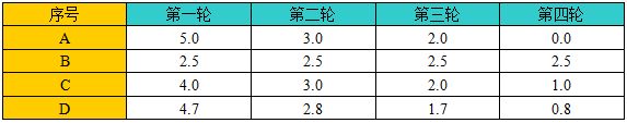 A方案采取了分別是15萬、9萬、6萬的三輪降價(jià)方式,B方案采取了分別是2.5萬的四輪降價(jià)方式,C方案則采取了分別是12萬、9萬、6萬、3萬的四輪降價(jià)方式,而D方案采取了分別是14.1萬、8.4 萬、5.1萬、2.4萬的四輪降價(jià)方式。