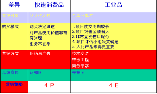 根據(jù)IMSC營銷研究院對工業(yè)品的了解,并對工業(yè)快速消費品與工業(yè)品行業(yè)之間的差異作如下幾點: