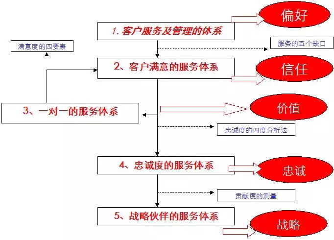 IMSC研究得出:服務(wù)大客戶一共有五個(gè)層次,需要來(lái)做提升,五個(gè)層次的提升能獲得相應(yīng)的客戶利益