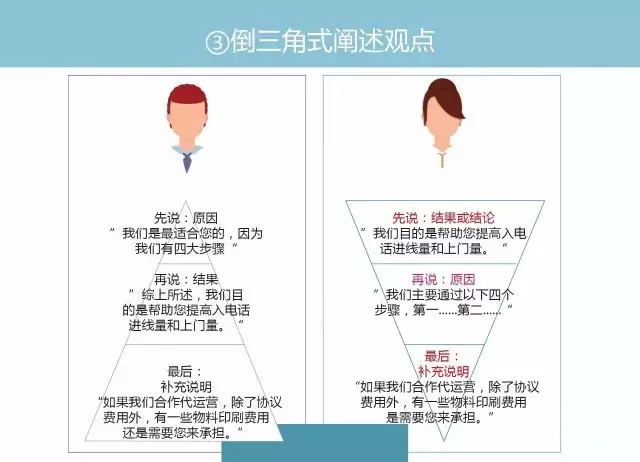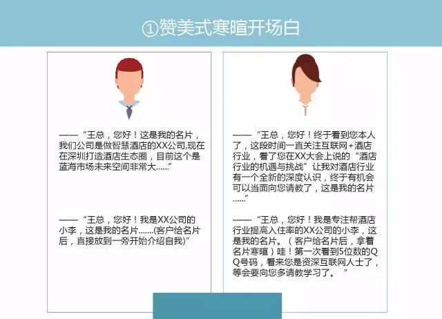 ①開(kāi)門(mén)見(jiàn)山:首次面談客戶,3分鐘把“我是誰(shuí)?我做過(guò)什么?我和你合作的目的是什么?”表達(dá)清楚