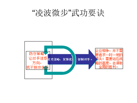企業(yè)相爭(zhēng),并不需要追求一時(shí)一地的得失;需要站在戰(zhàn)略的高度,去謀取全局的勝利。這就是“凌波微步”之招所追求的效果。