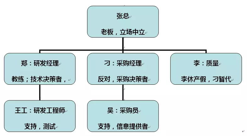 在多次聯(lián)系采購(gòu)刁經(jīng)理無(wú)果的情況下,決定繞開(kāi)采購(gòu)刁經(jīng)理。于是通過(guò)小吳所給的A公司張總的聯(lián)系方式,我自己聯(lián)系,可結(jié)果是:又被張總推給采購(gòu)部門(mén)了。然后我就請(qǐng)我們秦總聯(lián)系A(chǔ)公司的張總,秦總爭(zhēng)取到了上門(mén)拜訪(fǎng)的機(jī)會(huì)。于是我和秦總一同上門(mén)拜訪(fǎng)了A公司的張總。在會(huì)談中,張總叫上了采購(gòu)刁經(jīng)理和研發(fā)部鄭經(jīng)理。此次張總給了我們打樣的機(jī)會(huì)(在會(huì)上其實(shí)是特別夸大了我司的實(shí)力,以及合作單位)。在這次拜訪(fǎng)之后,以溝通產(chǎn)品技術(shù)要求為由多次拜訪(fǎng)了研發(fā)鄭經(jīng)理,以及鄭經(jīng)理手下王工。并分別邀請(qǐng)鄭經(jīng)理和王工外出吃了幾次飯。在這幾次商務(wù)活動(dòng)中,我們了解到:鄭經(jīng)理和刁經(jīng)理最早是一家國(guó)企的同事,鄭經(jīng)理作為專(zhuān)家人才由張總挖過(guò)來(lái),后來(lái)鄭經(jīng)理也介紹刁經(jīng)理來(lái)到A公司,主要負(fù)責(zé)采購(gòu),。之前的產(chǎn)品品質(zhì)管理李因?yàn)楫a(chǎn)假休長(zhǎng)假,所以暫時(shí)品質(zhì)管理也由刁經(jīng)理兼管。在刁經(jīng)理負(fù)責(zé)采購(gòu)以后,電源的采購(gòu)逐漸向?qū)幉–公司采購(gòu),而原來(lái)成都D公司因?yàn)楦鞣N小問(wèn)題,逐漸減少采購(gòu)。研發(fā)鄭經(jīng)理對(duì)于刁經(jīng)理的做法存在一定的意見(jiàn),所以在幾次商務(wù)活動(dòng)后,我們成功將鄭經(jīng)理發(fā)展為教練了。鄭經(jīng)理表示“你們盡管先將樣品送過(guò)來(lái),測(cè)試是我們研發(fā)部門(mén)說(shuō)了算?!?/span>